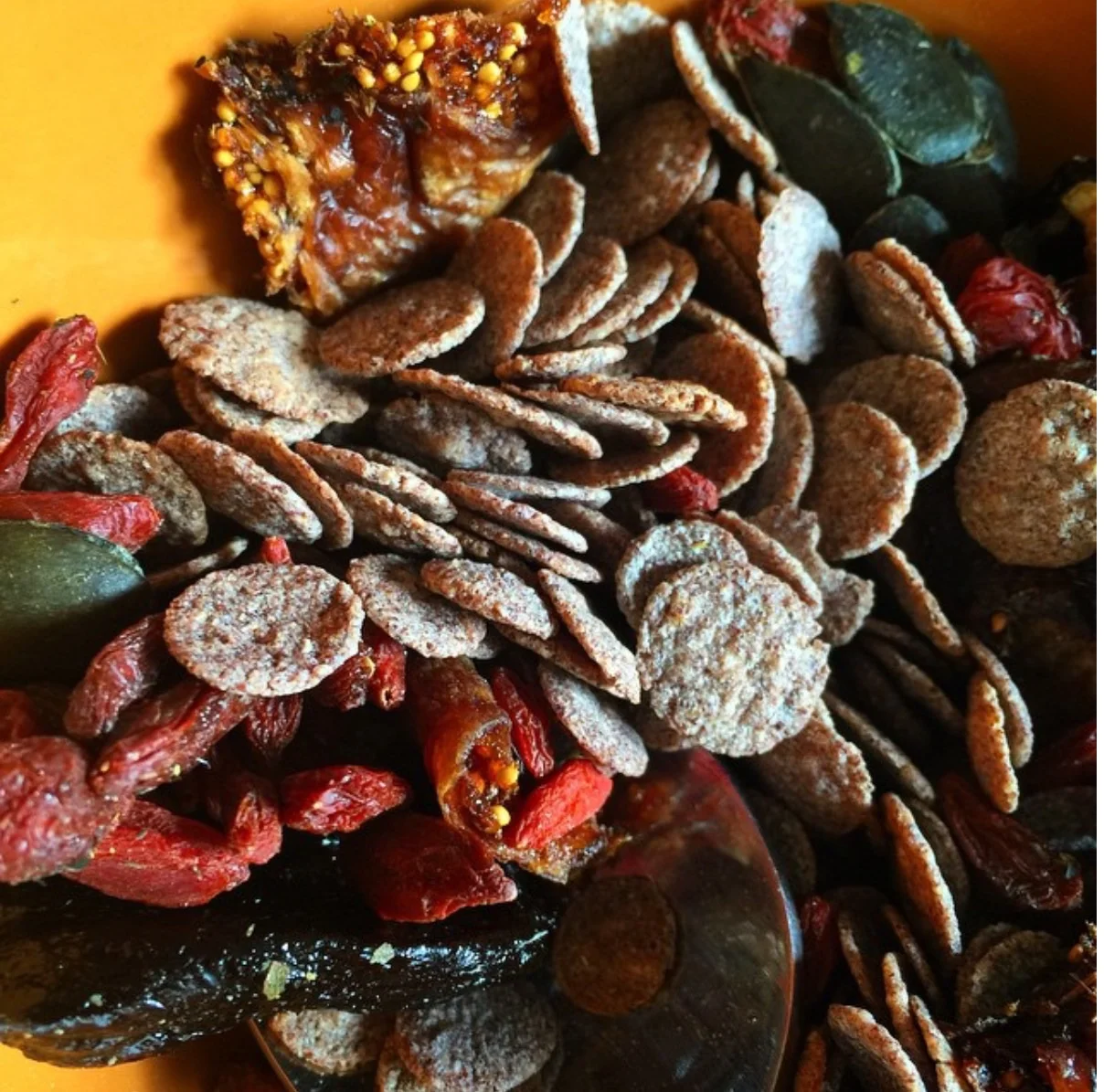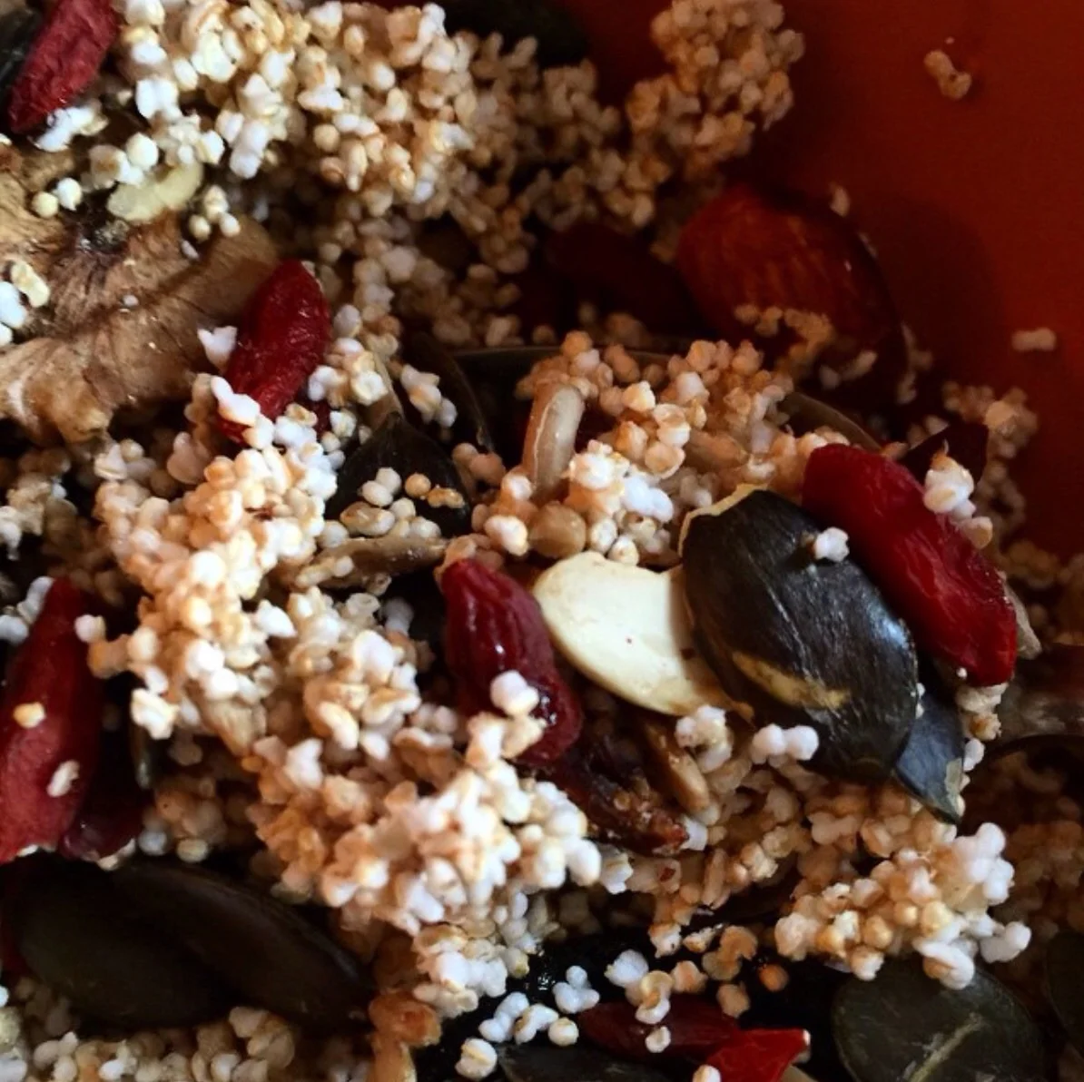 Muesli mix: This is the easiest way to give yourself a boost of antioxidants. I rotate between different grains each week – from ragi to amaranth, to oats, and multigrain flakes. I prefer pure flakes instead pre mixed muesli, and I also rotate between the superfoods I toss them with. Use walnuts, pumpkin seeds and prunes one week and try goji berries, chia seeds and soaked almonds the next. Use sesame seeds in winter, two Brazil nuts when your skin feels dry, dates if you’re vegetarian so you can get your B12. You get the drift right? Here are a few examples made with multigrain flakes, ragi, and amaranth: