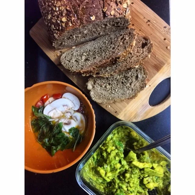Eggs and toast (with a twist): I don’t understand these egg white omelettes. Sure if you have cholesterol then avoid the yellow, but if not then eat just one egg, with the yolk. Did you know that cooked egg yolk contains a huge amount of biotin, which is essential for healthy skin and hair? Skip butter on the accompanying toast. Instead, drizzle some extra virgin olive oil, raw organic honey, or mashed avocado with olive oil, salt and pepper on it. Of course make your omelette with a rotation of veggies: onions, mushrooms, asparagus all work.