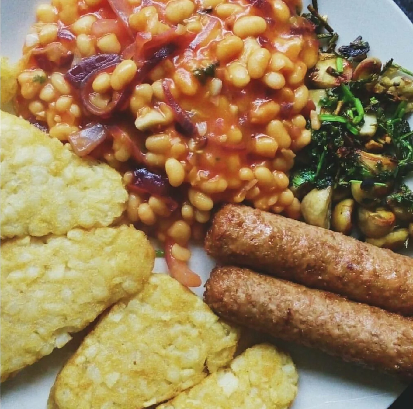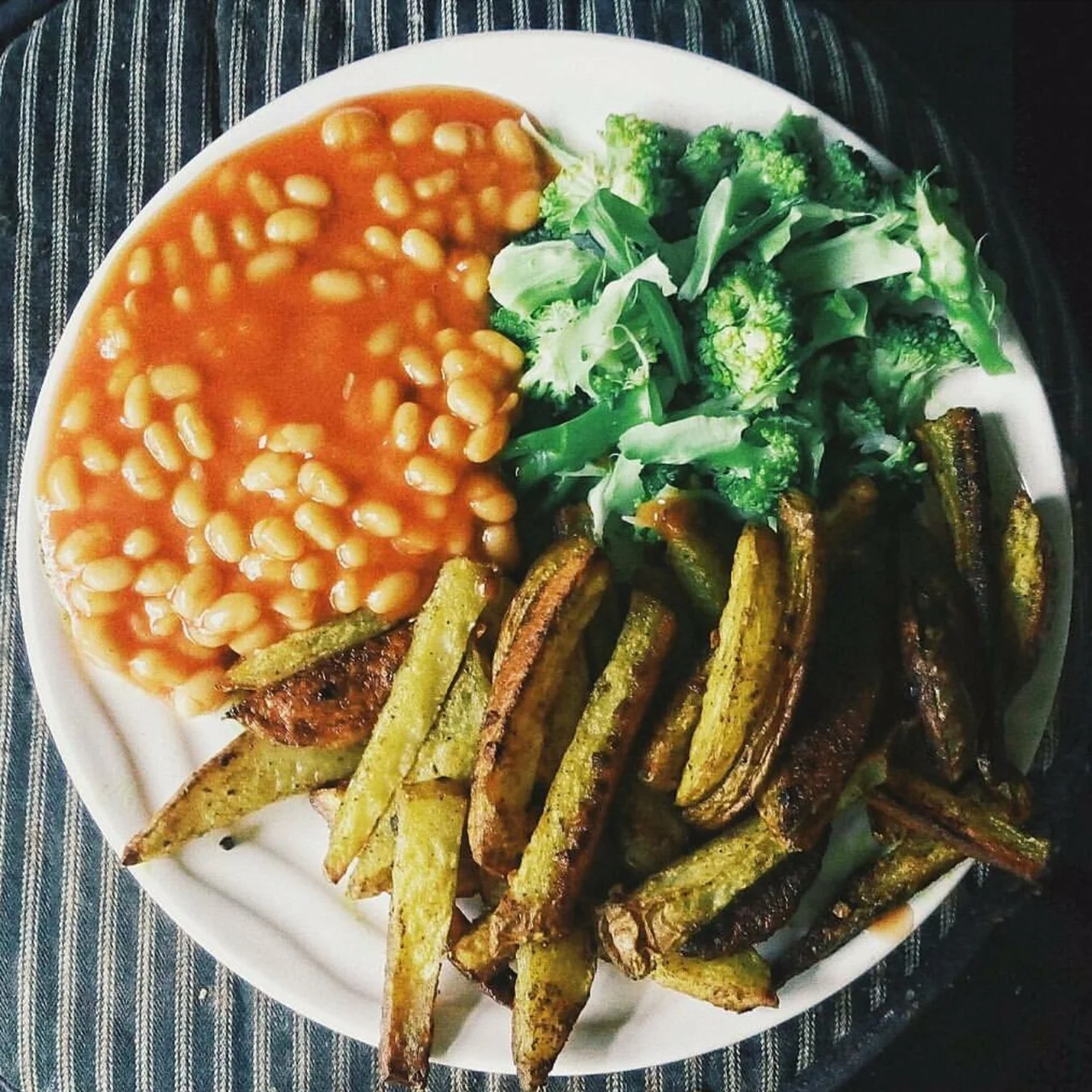I'm currently doing IF (intermittent fasting) so I skip breakfast and just have a black coffee, maybe with some coconut oil (vegan bulletproof coffee). Although I'm obsessed with breakfast food and sometimes have it for lunch. I love crumpets with vegan butter or olive oil and marmite and I also love a good vegan fry up with Linda McCartney sausages, beans, mushrooms and hash browns. But these are occasional treats. If I want to go for something healthy then a smoothie bowl is awesome, just frozen bananas maybe with some frozen berries as well and some acai or spirulina, topped with granola, fresh berries, chia seeds, coconut flakes, goji berries, sunflower seeds, the works! For lunch or dinner it really varies, a green salad with quinoa or butternut squash, avocado, beetroot, maybe some tofu or tempeh, red rice, edamame...or I might do a soba noodle stir fry with mushrooms and tempeh. Falafel salad, or one day I might have a chickpea burger with homemade fries and a green salad on the side...I also love a good bagel and I fill it with so much yummy stuff like cashew butter, raw vegan cashew cheese, maybe some maple tempeh 'bacon', lots of salad, hummus, whatever condiments I have in the fridge. I also love asian food, anything from Japan, China, Indonesia, India, Pakistan. I also love Middle Eastern food as well...the possibilities are endless and I have never felt like i was missing out. Pretty much whatever you eat as a meat eater I can veganise.