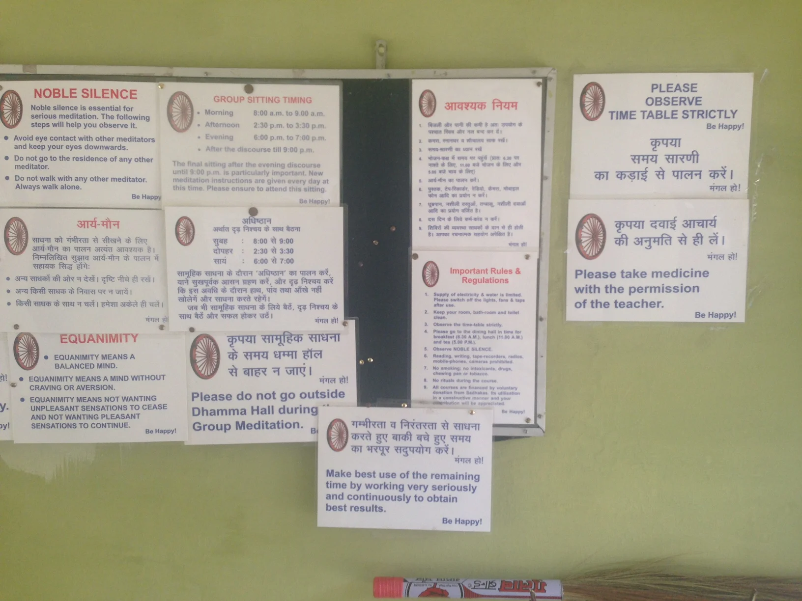 I went to the Dhamma Salila in Dehradun because it was the peak of summer in Delhi and the hills seemed like a good idea. The ashram itself is very bare - they give you bedding but its best to carry your own. Bedding, a torch and an alarm clock. Once you enter the ashram and register, they expect you to give away your reading and writing material, your mobile phone, food, any medication or painkillers. If you have to take some medicine then you have to let them know and usually they allow it.